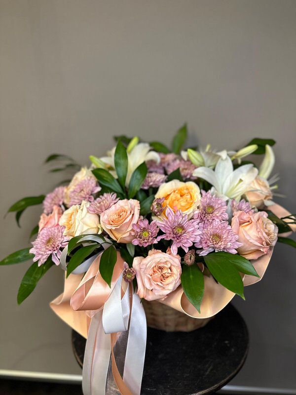 | Состав: | Розы, Гвоздики, Гортензии, Пионовидные розы, Хризантемы |